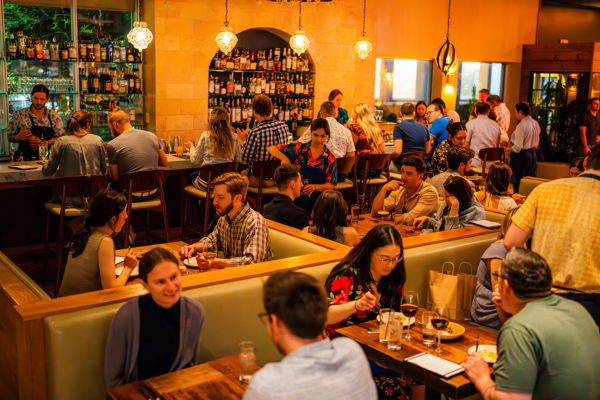 One of the most important visual storytelling concepts is to show, don’t tell. This picture is doing that perfectly. I immediately hear many conversations happening and the noise of a tin shaker pouring a new cocktail into a glass. The yellow, orange, and green colors exude a warm and approachable atmosphere that’s still chic. This picture gives enough context to viewers to think of what type of archetype would dine here. Someone who values higher quality food and beverage experiences, who is maybe trying to get away from their child to have a date night with their significant other. Turning the page, let’s look at one more restaurant picture.